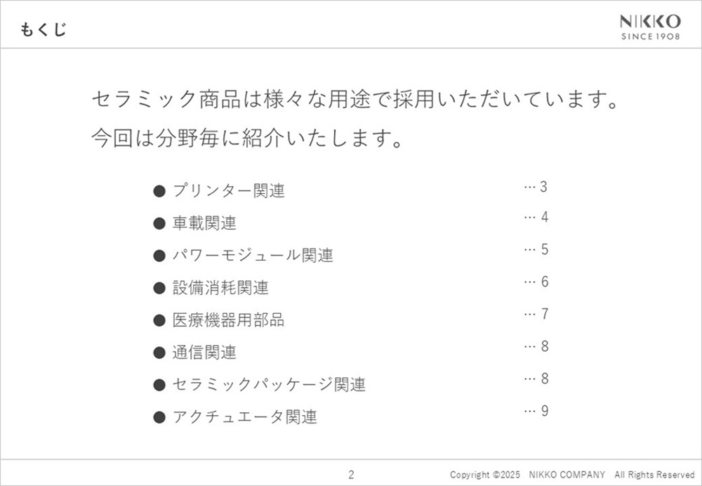 ニッコーのセラミック基板を分野別に特徴と用途例もあわせてご紹介します。