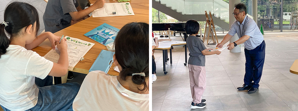 今回の第3回では収穫体験のほかに、イベントの最終回として全体の振り返りを行いました。また、参加した小学生には、今後グリーンカーテンを育て広める仲間として「グリーンカーテンキッズ認定証」が授与されました。