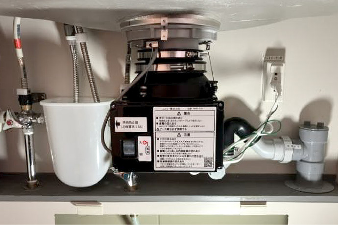 長年お使いのディスポーザーにサビが発生するなど、古くなっていたので、交換をご希望。パナソニック製ディスポーザーKD-132(製造中止品)から、ニッコーのCIALACへ交換いたしました。